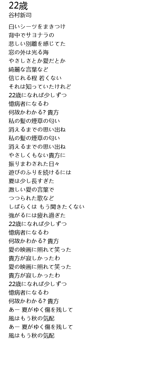 | Song | 22歳 |
