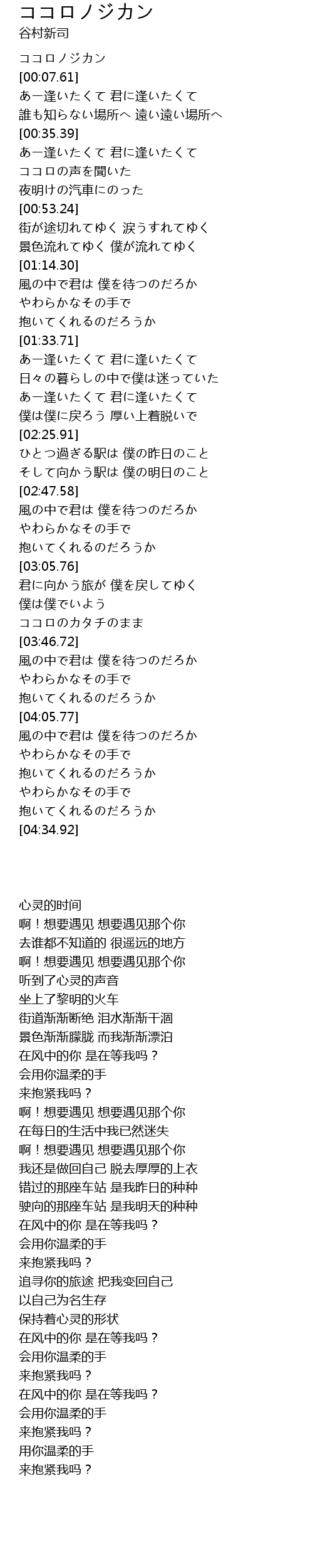 | [00:00.28] | ココロノジカン |