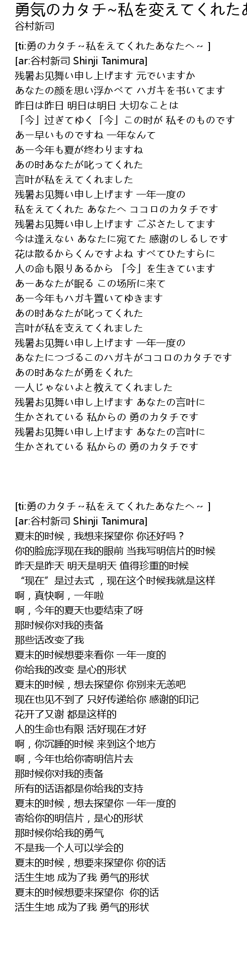 | [ti:勇のカタチ~私をえてくれたあなたへ~ ] | |