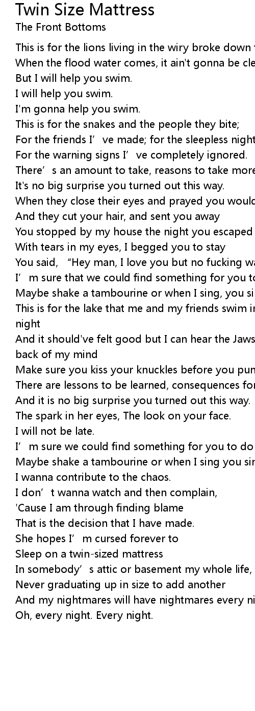| Song | Twin Size Mattress |