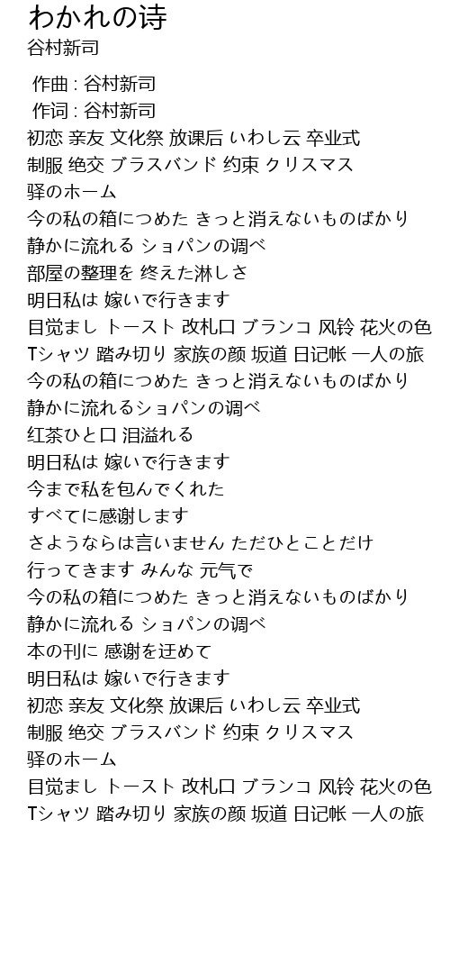 | [02:46.51] | 明日私は 嫁いで行きます |