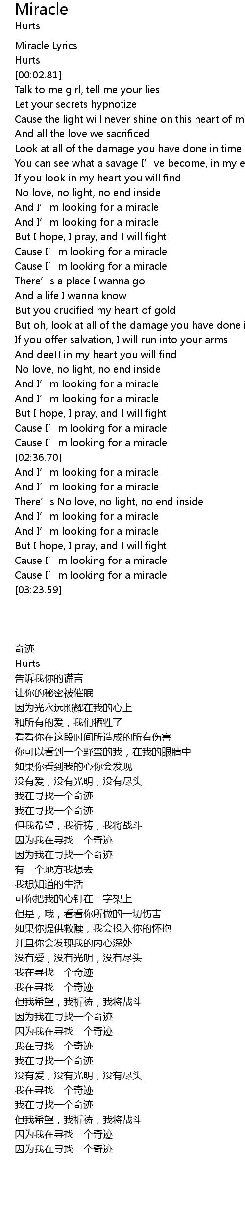 | [02:23.89] | And I' m looking for a miracle |