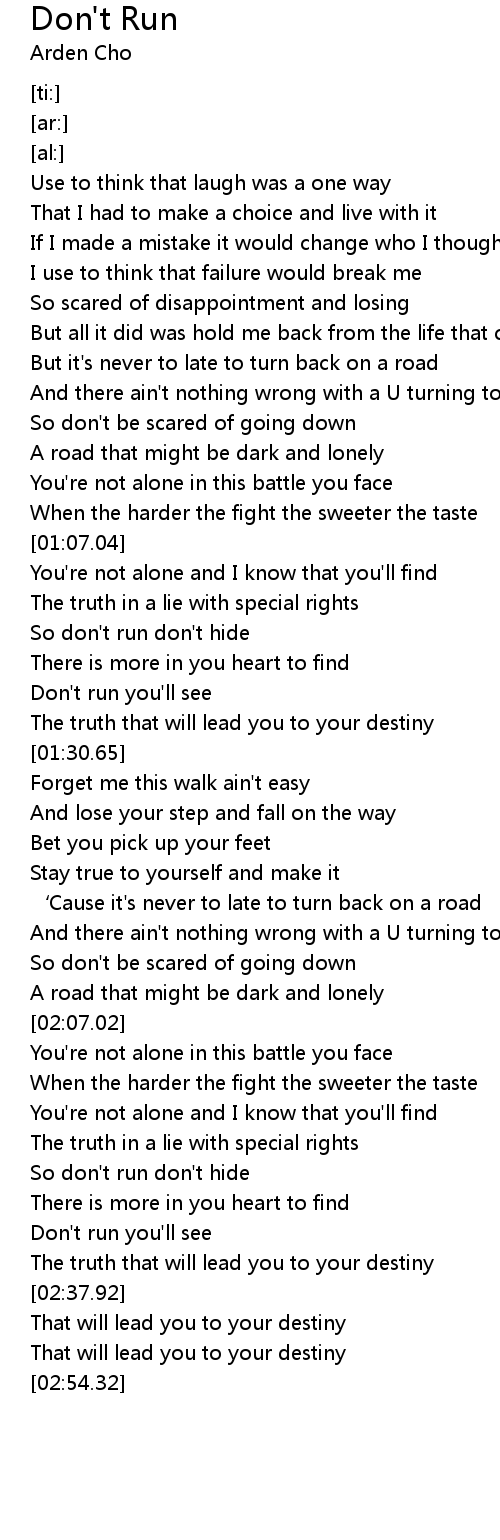 | [00:44.63] | But it' s never to late to turn back on a road |