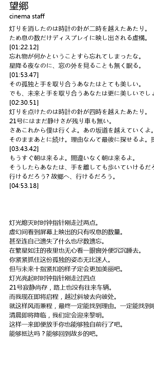 | [04:34.01] | 行けるだろう? 故郷へ、行けるだろう。 |