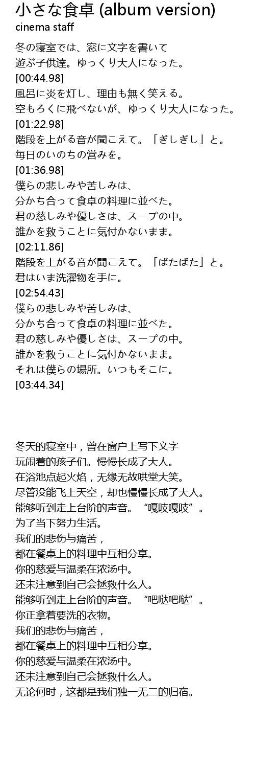 | [01:44.16] | 分かち合って食卓の料理に並べた。 |