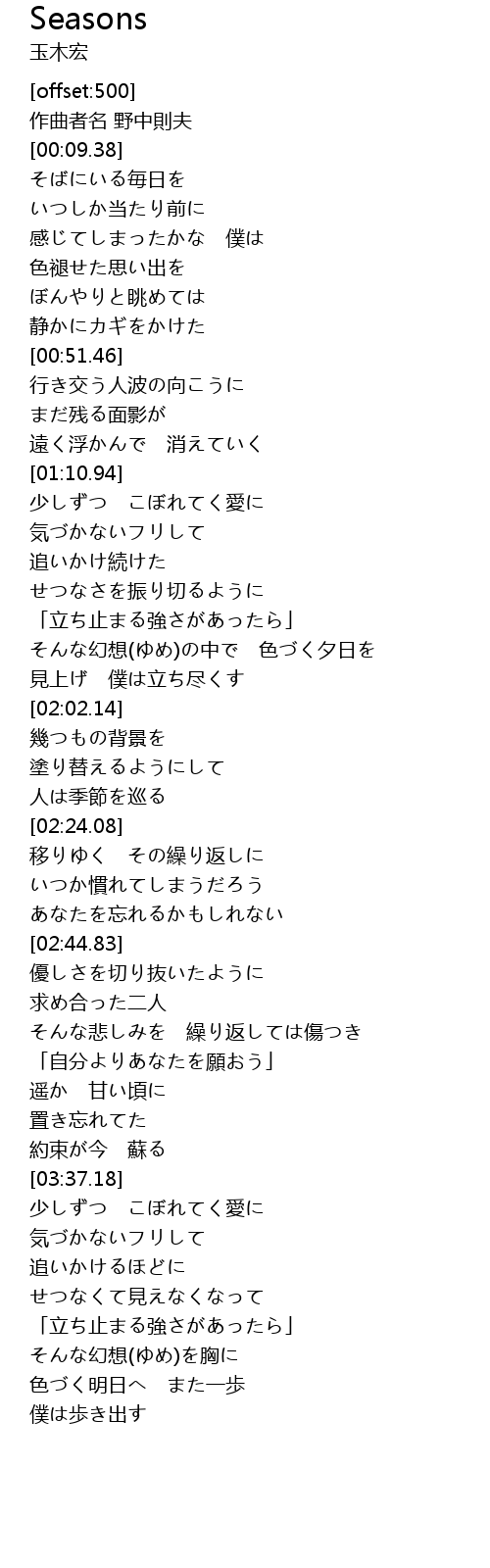 | [02:16.93] | 人は季節を巡る |