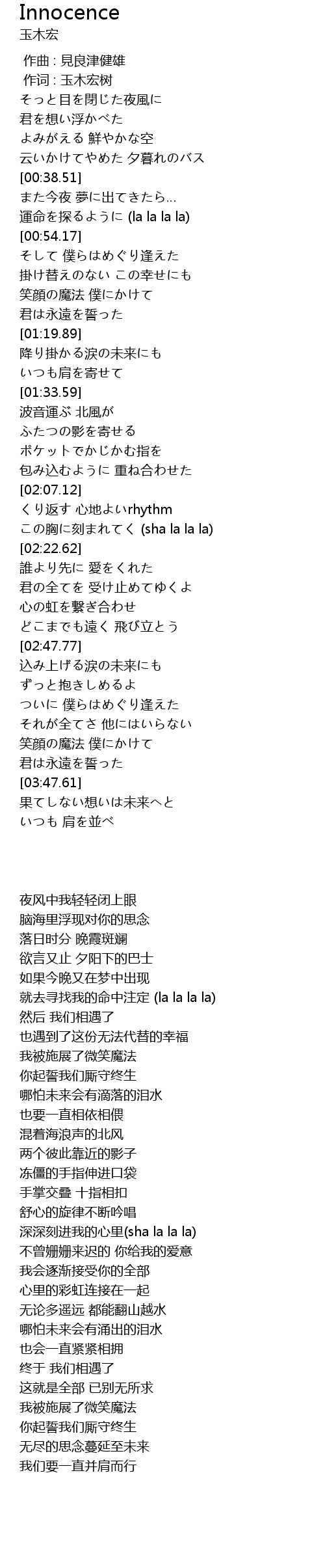 | [00:01.00] | 作词 : 玉木宏树 |