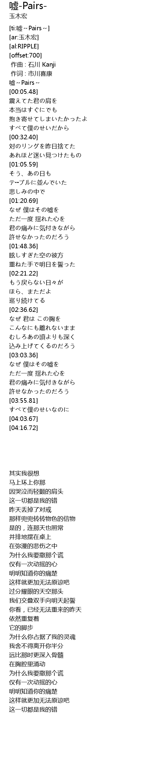 | [00:00.00] | zuò qǔ : shí chuān Kanji |