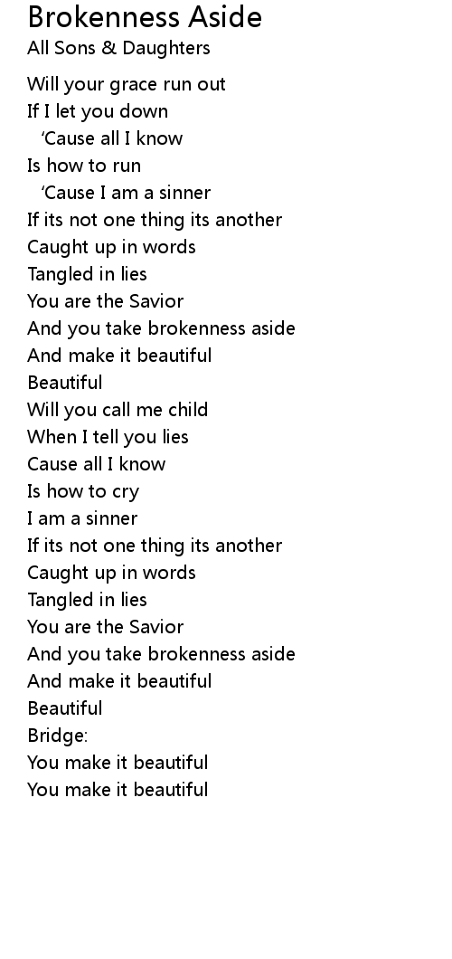 | And you take brokenness aside | |