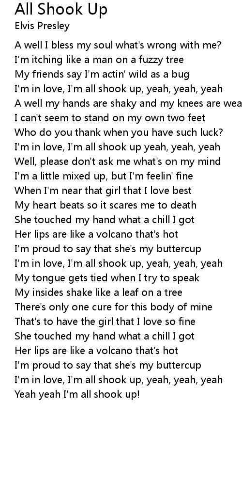 I'm in love, I'm all shook up yeah, yeah, yeah |