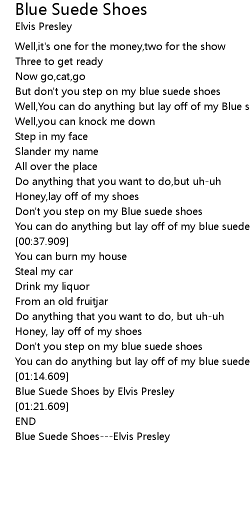 [01:18.609] Blue Suede Shoes by Elvis Presley