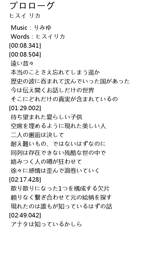 | [01:04.202] | 今は伝え聞くお話しだけの世界 |
