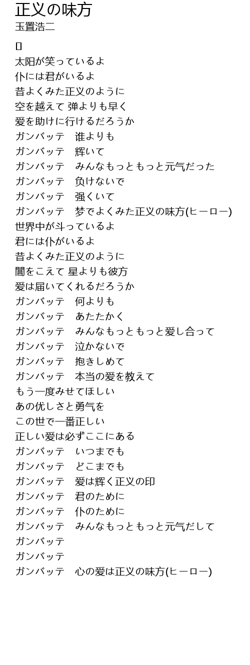 正义の味方 zheng yi wei fang Lyrics