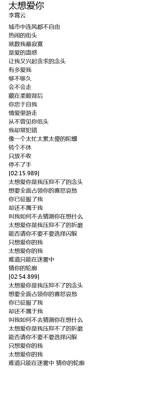 | [02:34.700] | 太想爱你是我压抑不了的折磨 |
