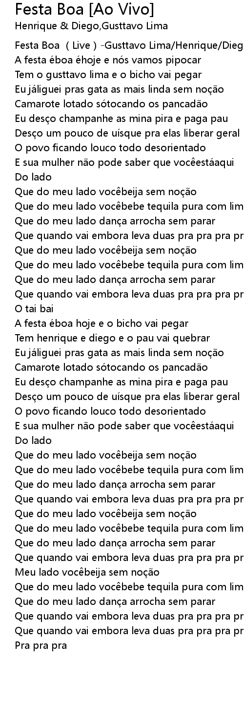 | [00:00.103] | Festa Boa (Live)-Gusttavo Lima/Henrique/Diego |