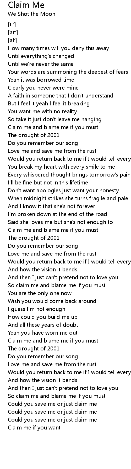 So claim me and blame me if you must |