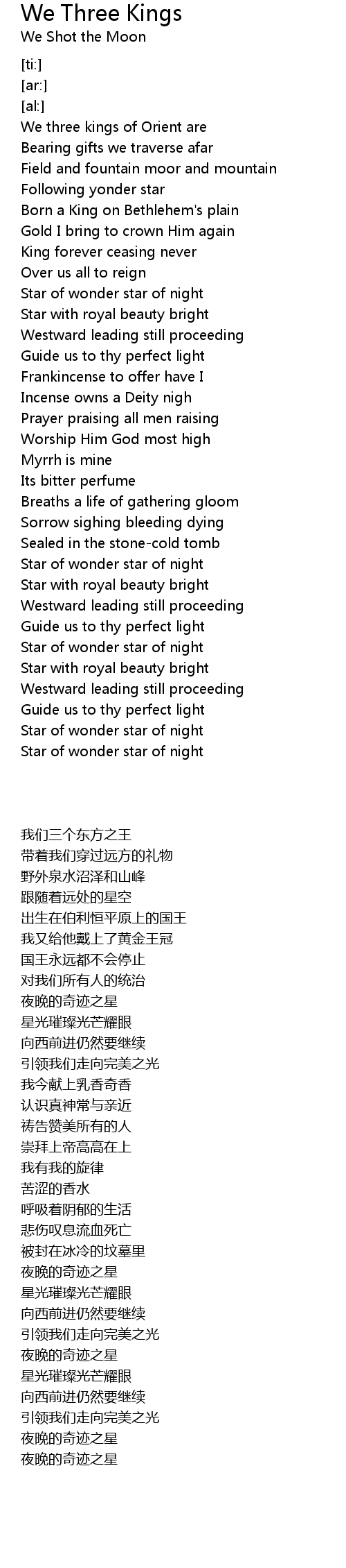 Star of wonder star of night |