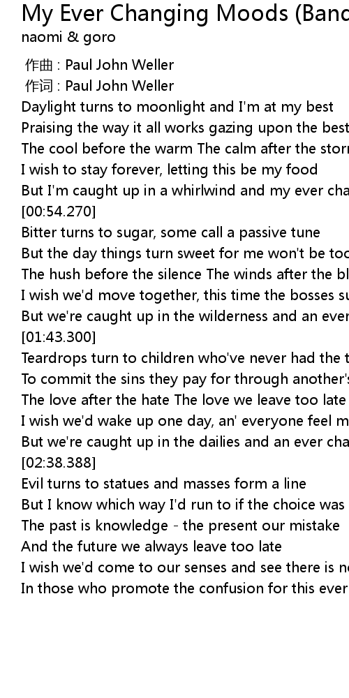 | [00:46.150] | But I'm caught up in a whirlwind and my ever changing moods |