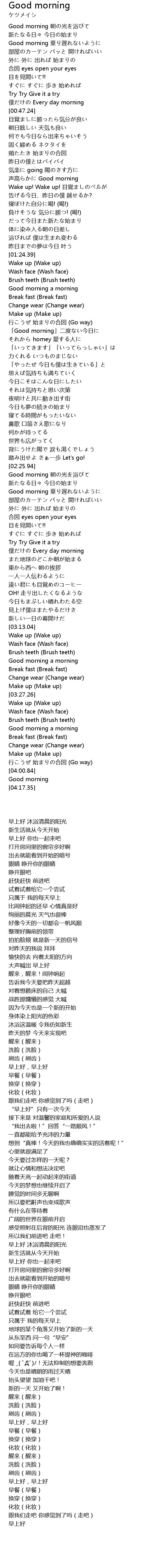 | [00:15.18] | Good morning 朝の光を浴びて |
