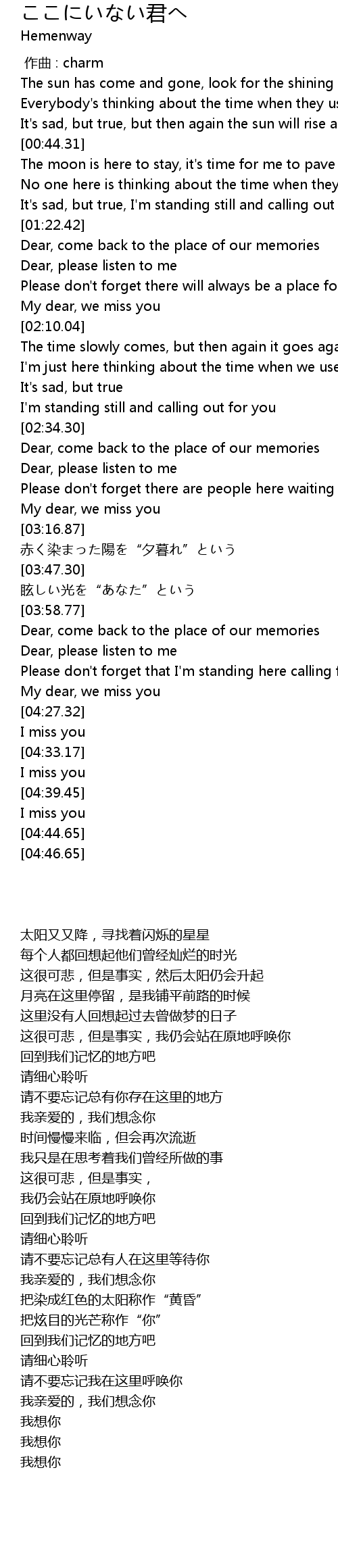 | [04:35.44] | I miss you |