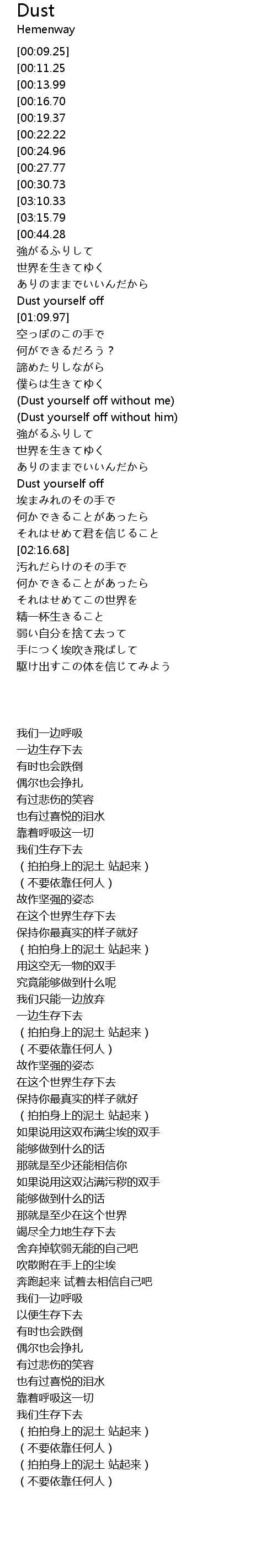 | [03:21.39][03:10.33][00:34.01] | (Dust yourself off without me) |