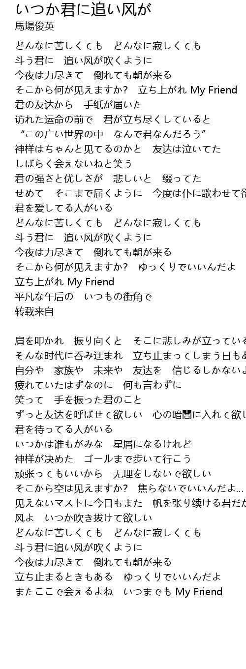 | 见えないマストに今日もまた 帆を张り续ける君だから | |