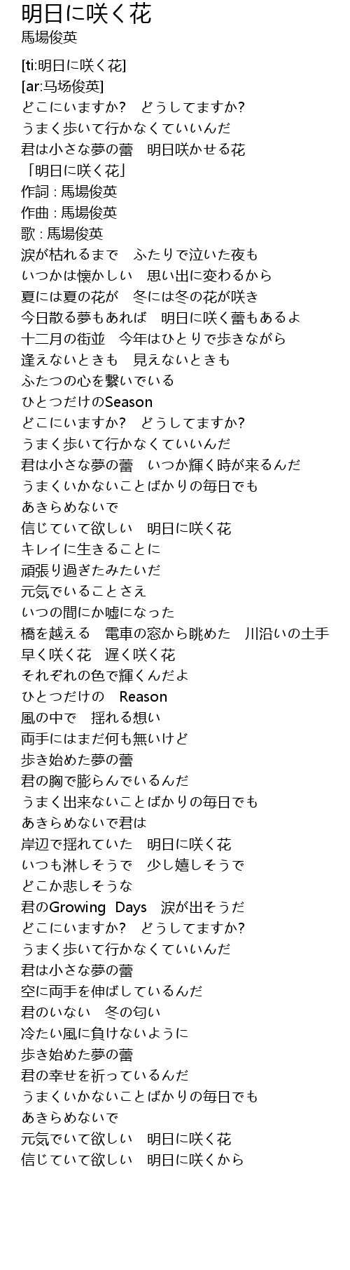 | [05:11.11] | 元気でいて欲しい 明日に咲く花 |