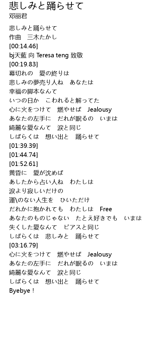 | [00:16.83] | bj天藍 向 Teresa teng 致敬 |