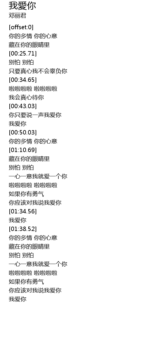 | [00:43.69] | ni zhi yao shuo yi sheng wo ai ni |