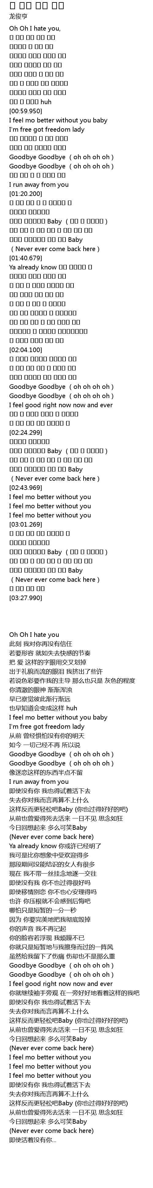 | [01:00.370] | I feel mo better without you baby |