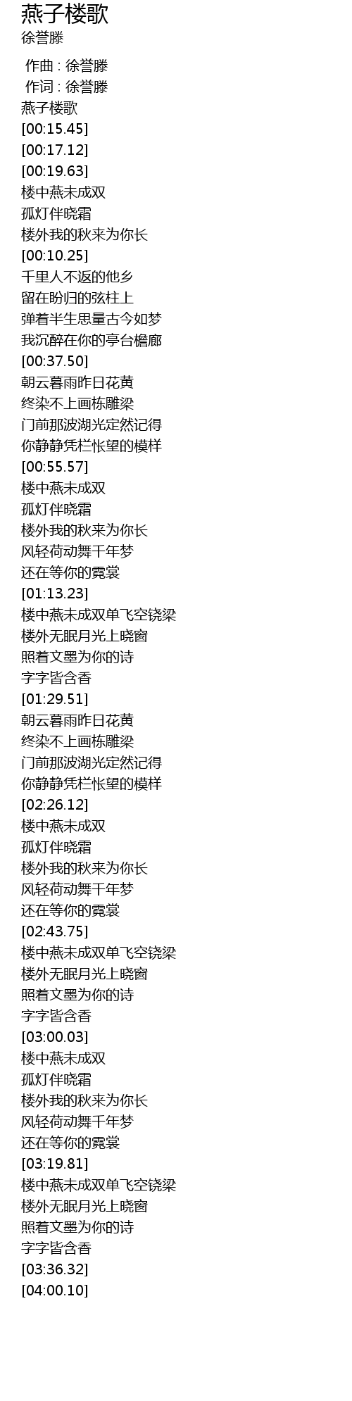 | [00:11.33] | yàn zi lóu gē |