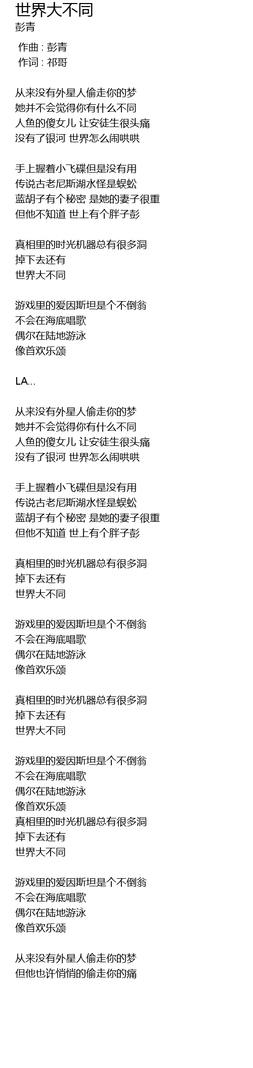 | [03:04.380] | shi jie da bu tong |