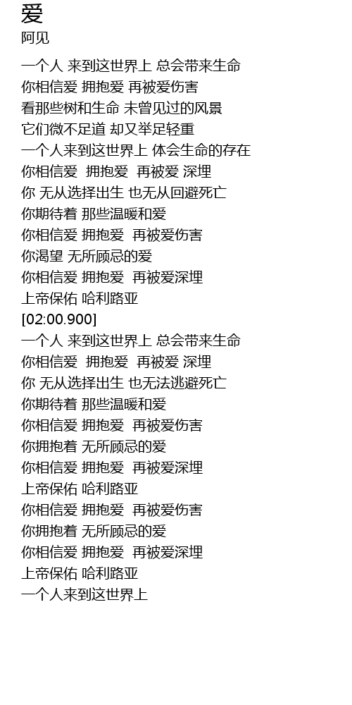 | [02:28.0] | 一个人 来到这世界上 总会带来生命 |