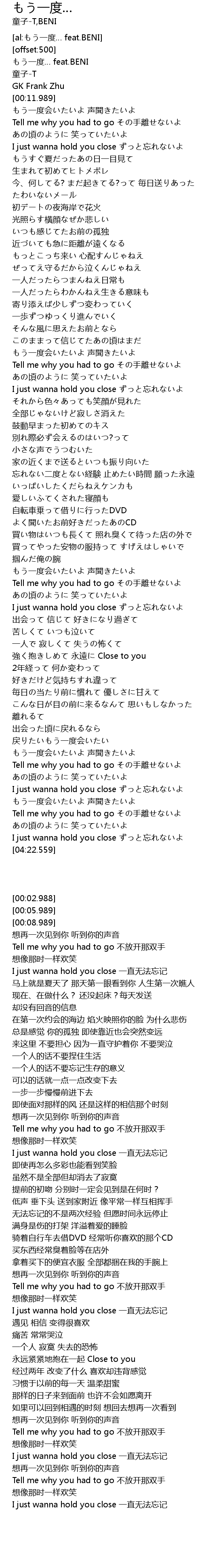 | [00:02.988] | もう一度… feat.BENI |