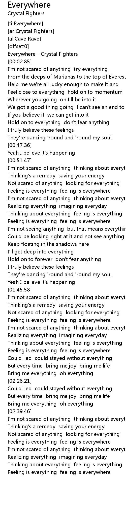 [00:00.53] Everywhere - Crystal Fighters