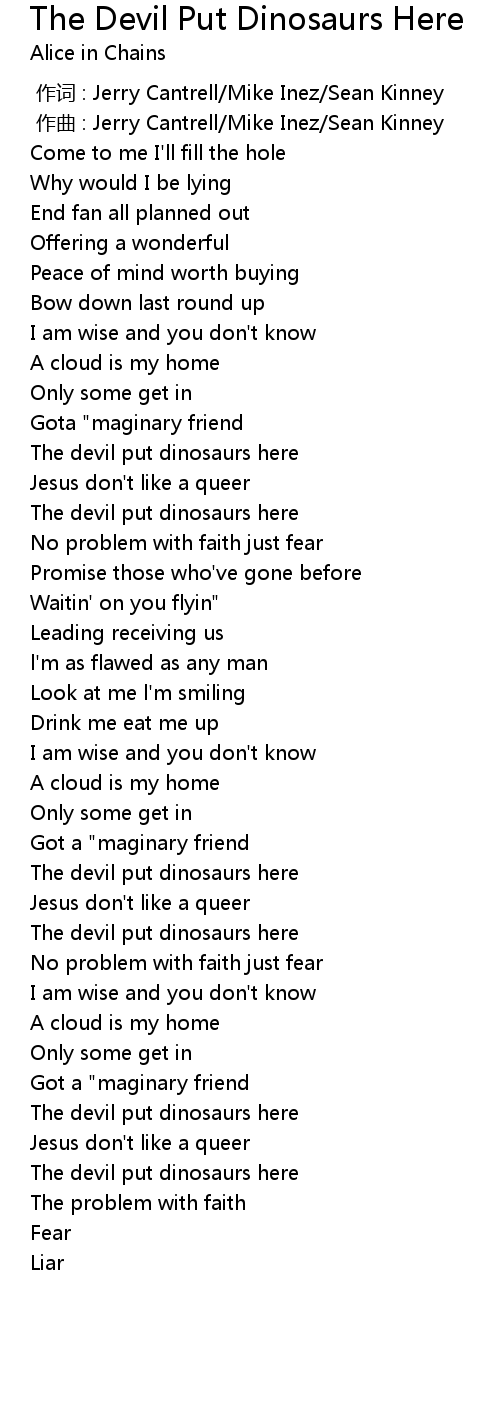 | [00:00.000] | 作词 : Jerry Cantrell/Mike Inez/Sean Kinney |