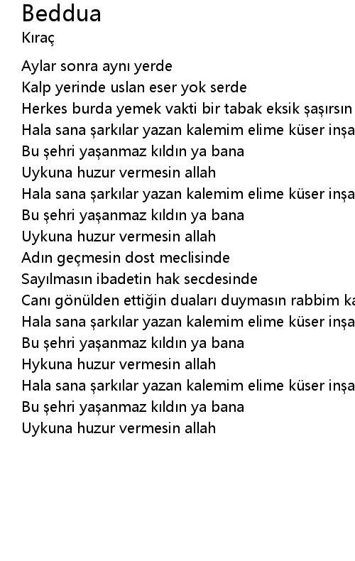 | Song | Beddua |