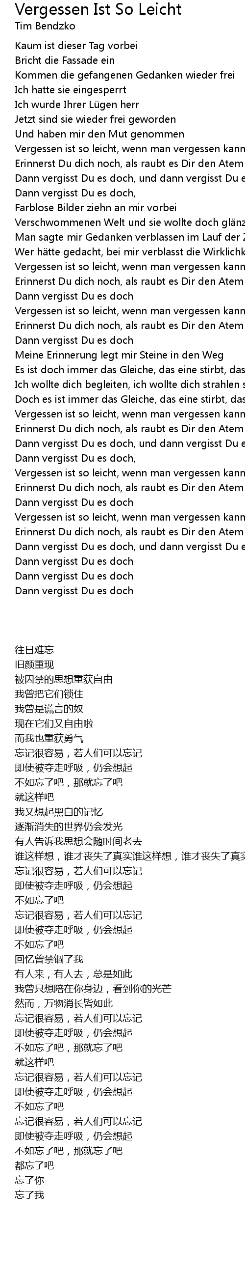| [03:20.286] | Vergessen ist so leicht, wenn man vergessen kann. |