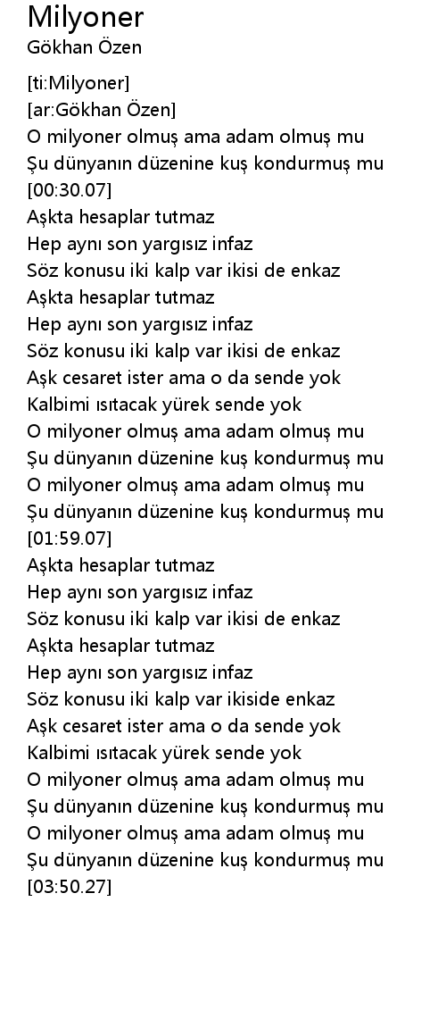 | [03:02.68] | O milyoner olmu ama adam olmu mu |