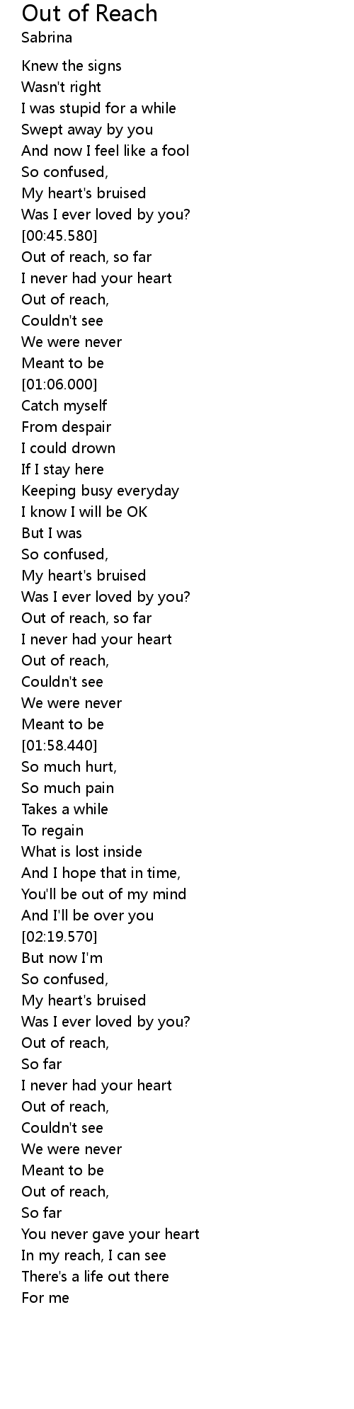 | [00:56.050] | Out of reach, |