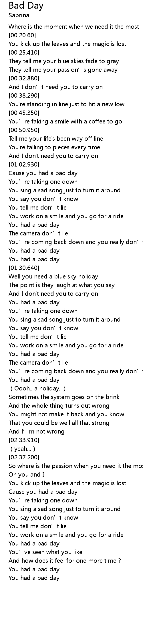 | [02:49.420] | Cause you had a bad day |