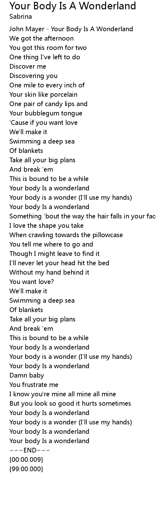 | [00:00.100] | John Mayer Your Body Is A Wonderland |