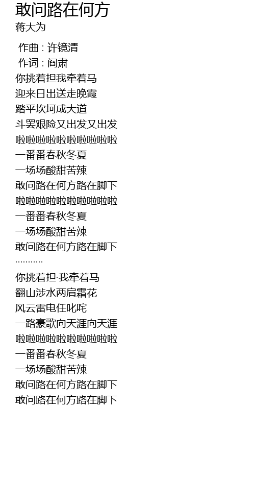 | [01:48.419] | 敢问路在何方路在脚下 |