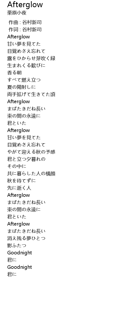 | [00:32.20] | Afterglow |