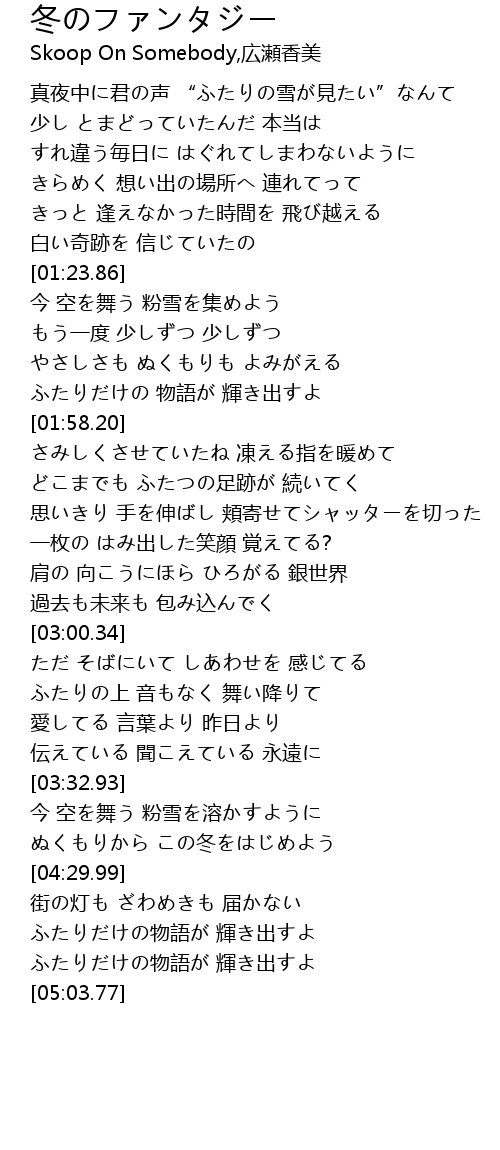 | [04:20.93] | ぬくもりから この冬をはじめよう |
