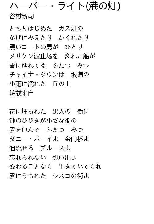 ハーバー・ライト(港の灯)
