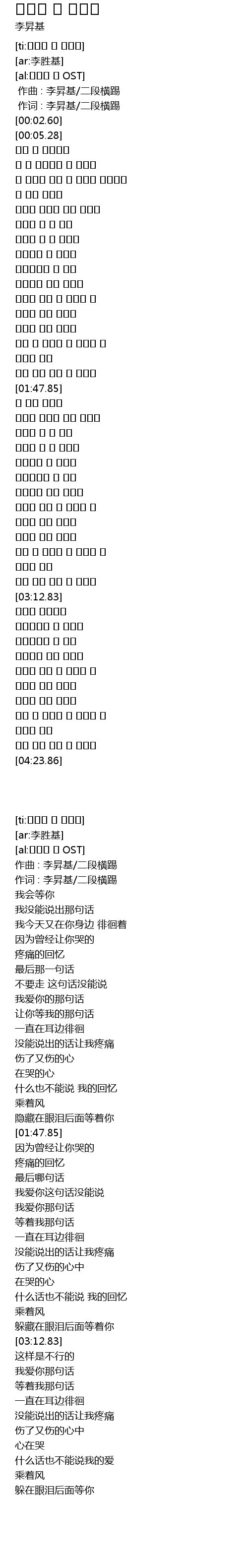 | [00:00.686] | 作词 : 李昇基/二段横踢 |