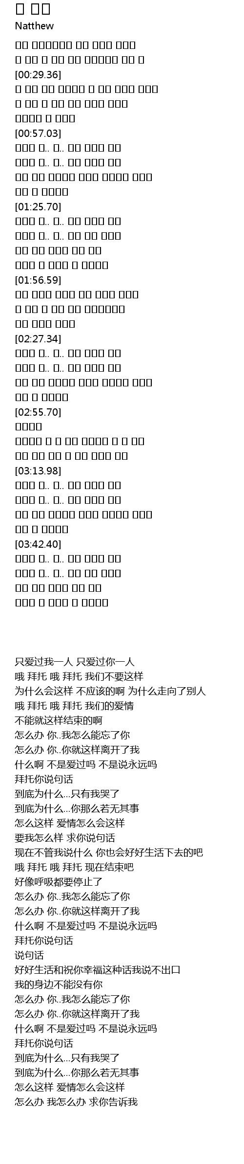 | [00:43.56] | 오 제발 오 제발 우리 사랑이 이렇게 |