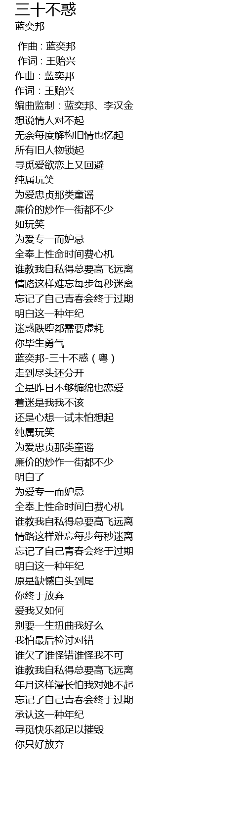 | [01:19.60] | 蓝奕邦-三十不惑(粤) |