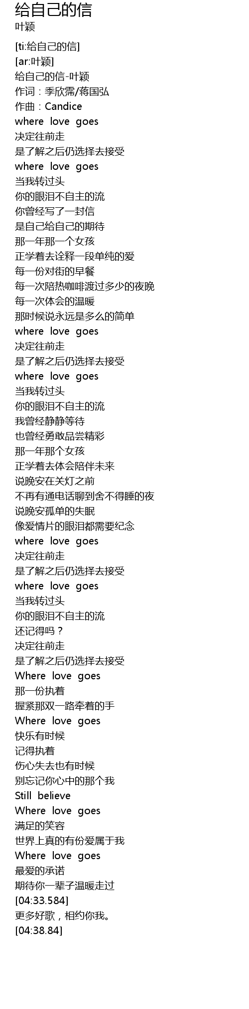 | [00:55.763] | ni ceng jing xie le yi feng xin |